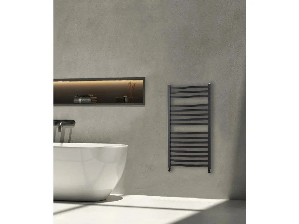 CERANO - Koupelnový radiátorový set Paolo - kombinované vytápění, termo tyč - boční jednobodové připojení - 604W - černá matná - 1090x550 mm