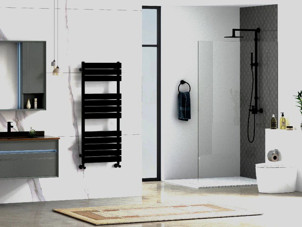 CERANO - Koupelnový radiátorový set Claude - kombinované vytápění, wifi tyč - boční jednobodové připojení - 650W - černá matná - 1200x500 mm