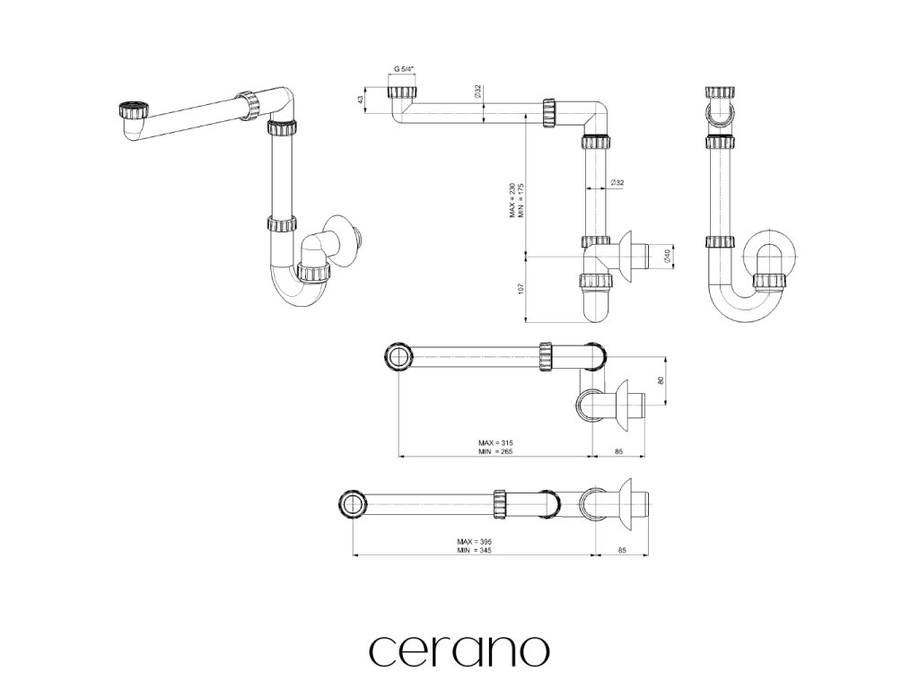 CERANO - Sifon umyvadlový/nábytkový, místošetřící - DN32/250-700 mm - s výpustí click-clack - univerzální - plast - bílá lesklá