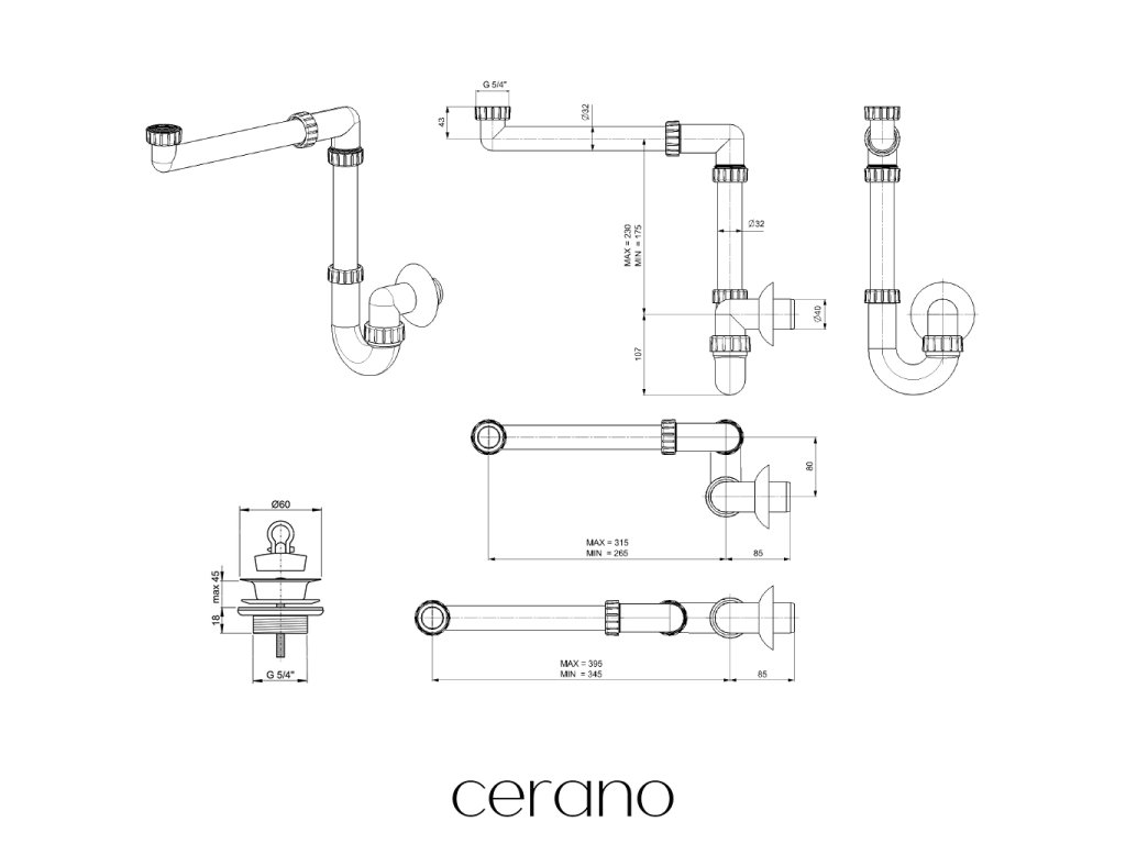 Závit 5/4 umožňuje snadné a bezpečné připojení sifonu k zátkám click-clack. Tento standardní rozměr zajišťuje kompatibilitu s většinou běžných instalací. Díky kvalitnímu závitu je zajištěno pevné spojení bez rizika úniku vody.