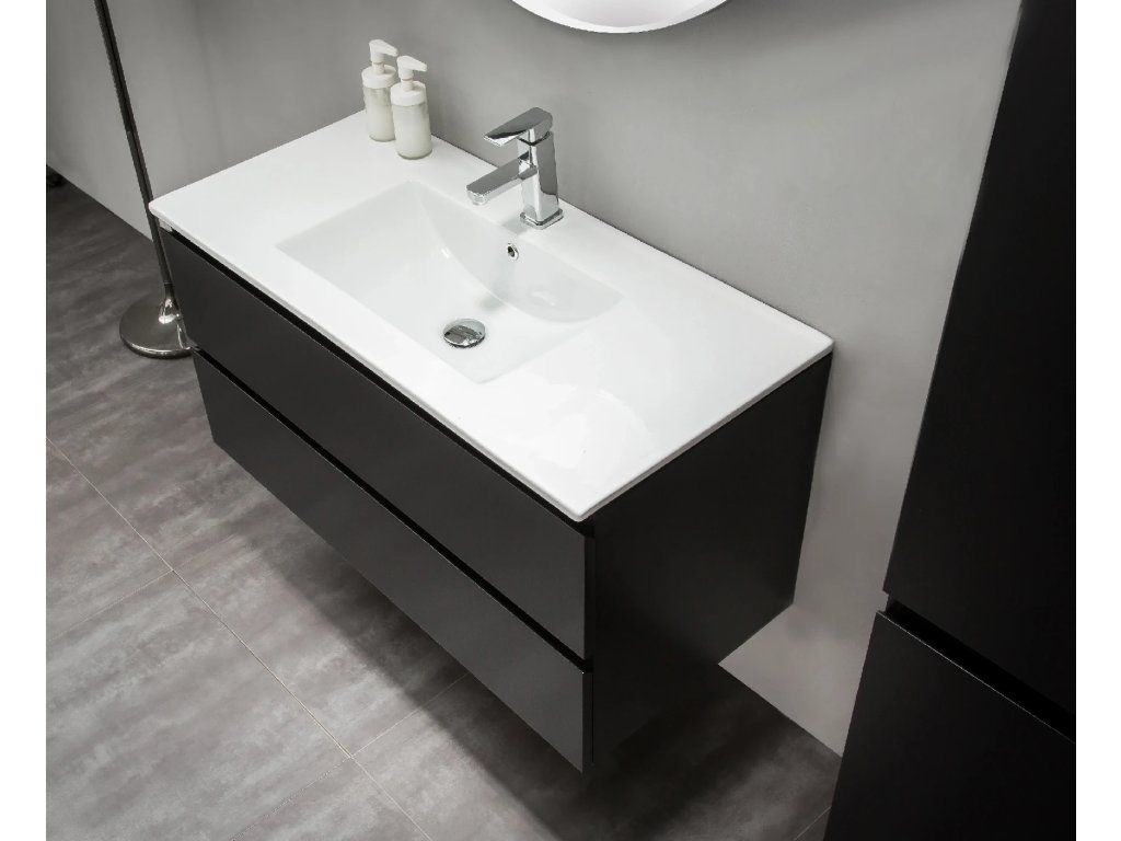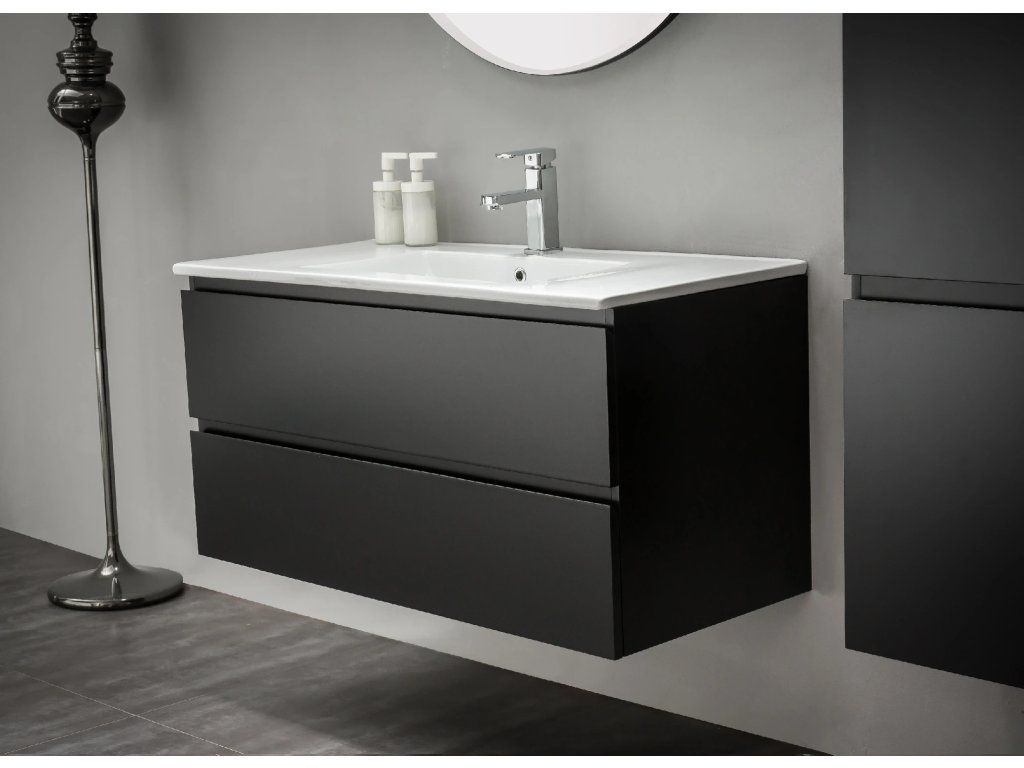 CERANO - Koupelnová skříňka pod umyvadlo Carole - černá matná - 99x48x45 cm