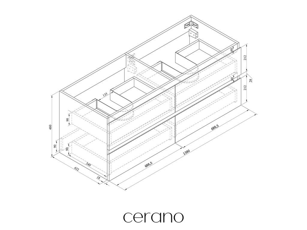 V rámci této série nabízíme širokou škálu rozměrů, abychom uspokojili různé potřeby našich zákazníků. Všechny koupelnové skříňky značky Cerano jsou navrženy tak, aby byly plně kompatibilní s deskami a umyvadly Cerano ve stejných rozměrech, což zajišťuje bezproblémovou instalaci a dokonalé sladění.