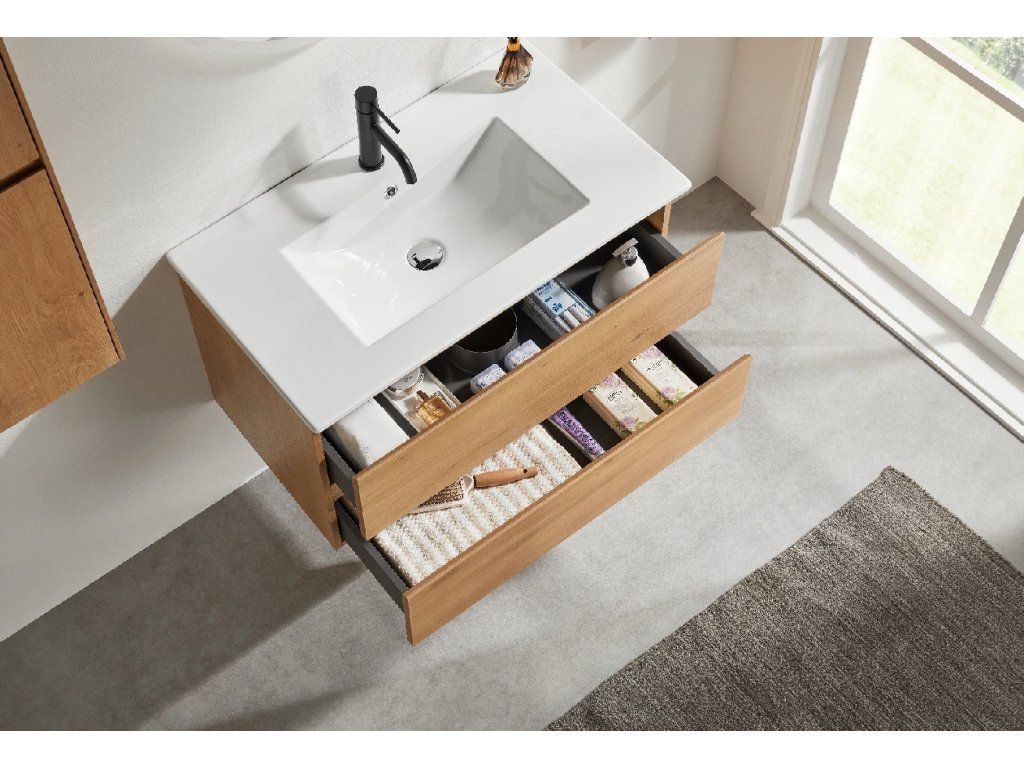 Ke skříňkám vždy nabízíme plně kompatibilní umyvadla nebo desky, u kterých máme jistotu správného usazení a funkčnosti. U umyvadel od jiných dodavatelů je použití možné, ale nemůžeme zaručit plnou kompatibilitu a bezproblémovou montáž.