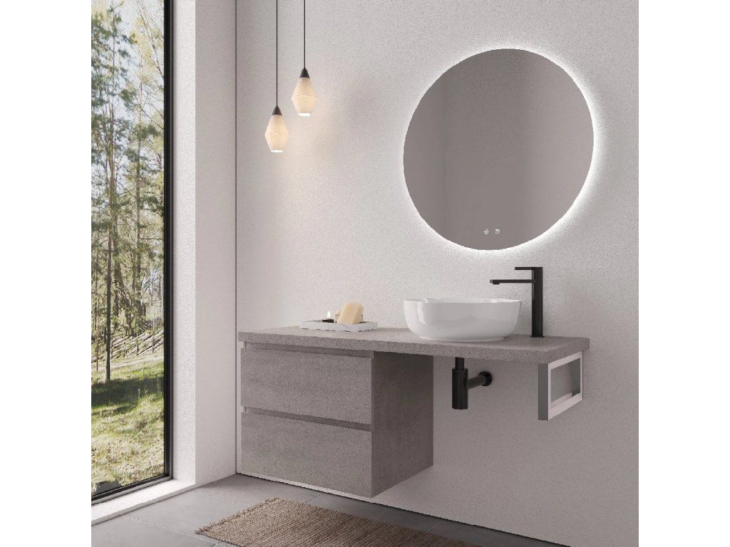 CERANO - Deska pod umyvadlo Navira Pro - 121x46,5x3,6 cm - skříňka Carole 59 cm - betonově šedá - konzole chrom
