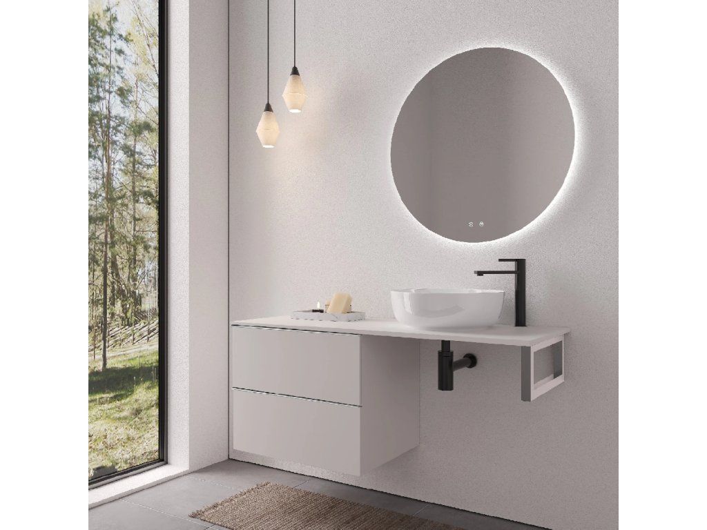 CERANO - Deska pod umyvadlo Navira Slim - 121x46,5x1,8 cm - skříňka Velora 59 cm - bílá matná, chromová úchytka - konzole chrom