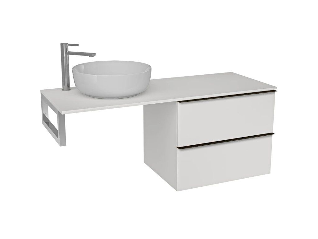 CERANO - Deska pod umyvadlo Navira Slim - 141x46,5x1,8 cm - skříňka Velora 69 cm - bílá matná, černá úchytka - konzole chrom