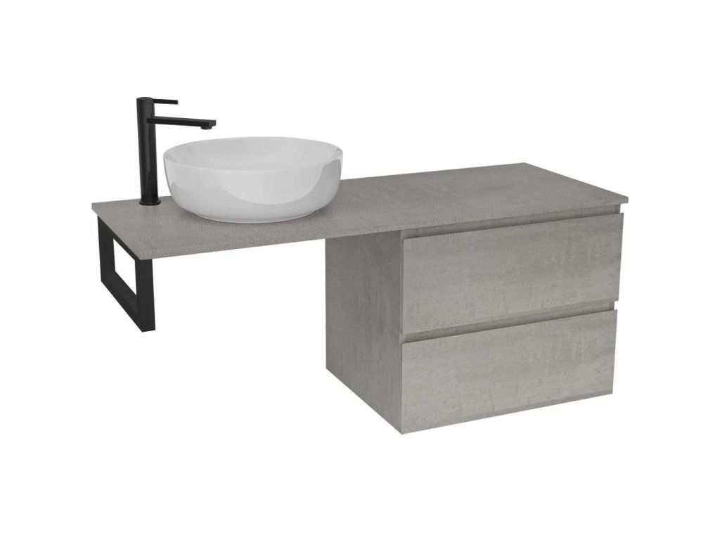 CERANO - Deska pod umyvadlo Navira Slim - 161x46,5x1,8 cm - skříňka Carole 79 cm - betonově šedá - konzole černá