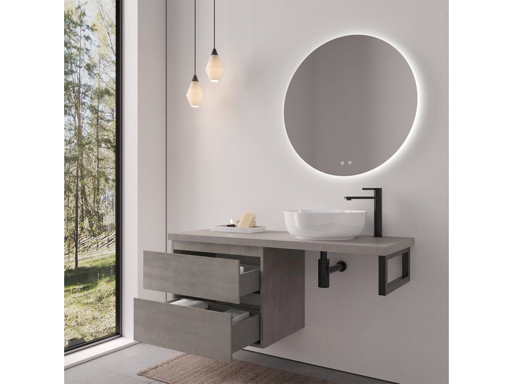 CERANO - Koupelnová skříňka Carole - betonově šedá + deska pod umyvadlo Navira Pro - 36 mm + konzole černá - 140x46x56,6 cm