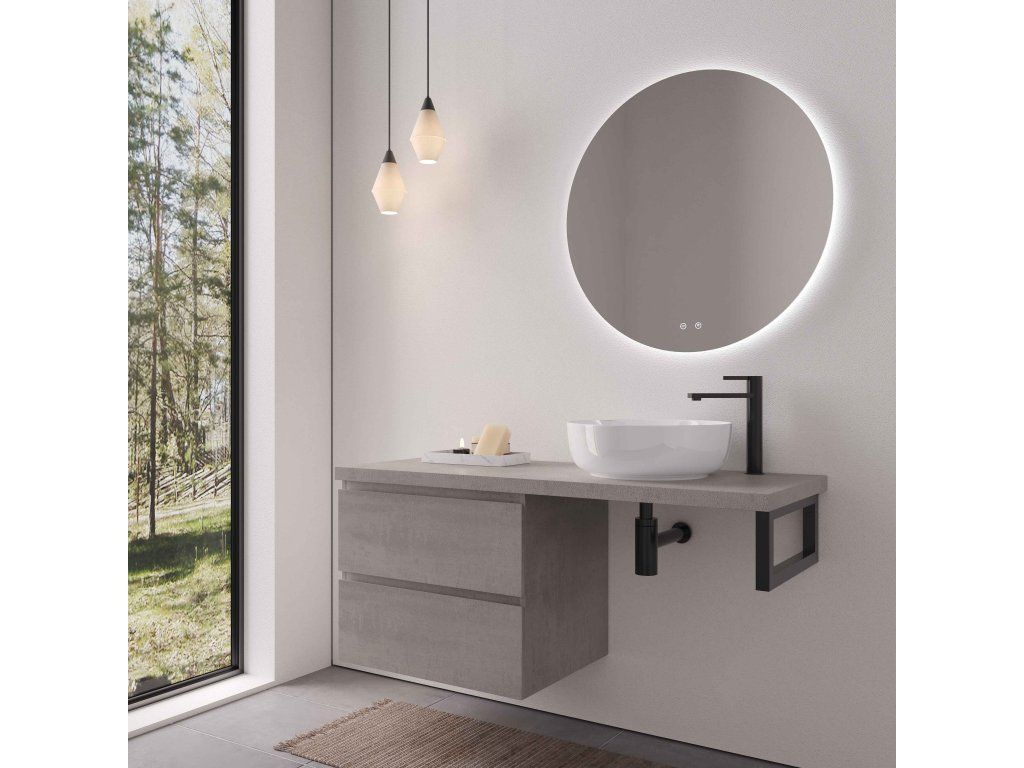CERANO - Koupelnová skříňka Carole - betonově šedá + deska pod umyvadlo Navira Pro - 36 mm + konzole černá - 160x46x56,6 cm