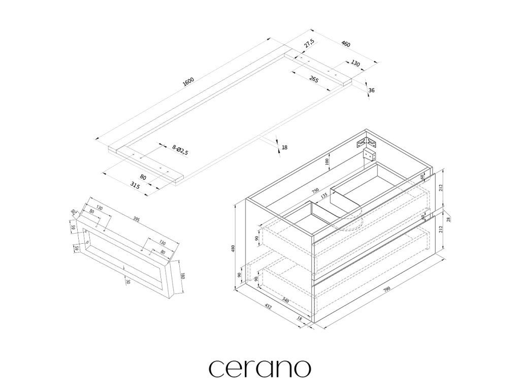 V rámci této série nabízíme širokou škálu rozměrů, abychom uspokojili různé potřeby našich zákazníků. Všechny koupelnové skříňky značky Cerano jsou navrženy tak, aby byly plně kompatibilní s deskami a umyvadly Cerano ve stejných rozměrech, což zajišťuje bezproblémovou instalaci a dokonalé sladění.