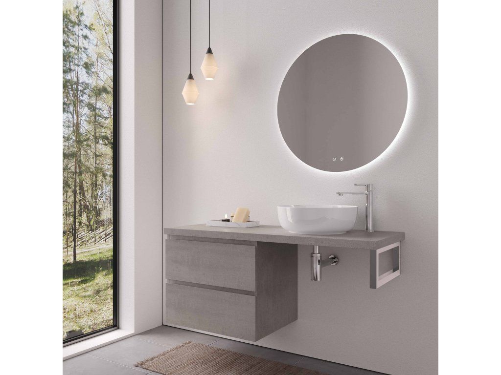 CERANO - Koupelnová skříňka Carole - betonově šedá + deska pod umyvadlo Navira Pro - 36 mm + konzole chrom - 160x46x56,6 cm