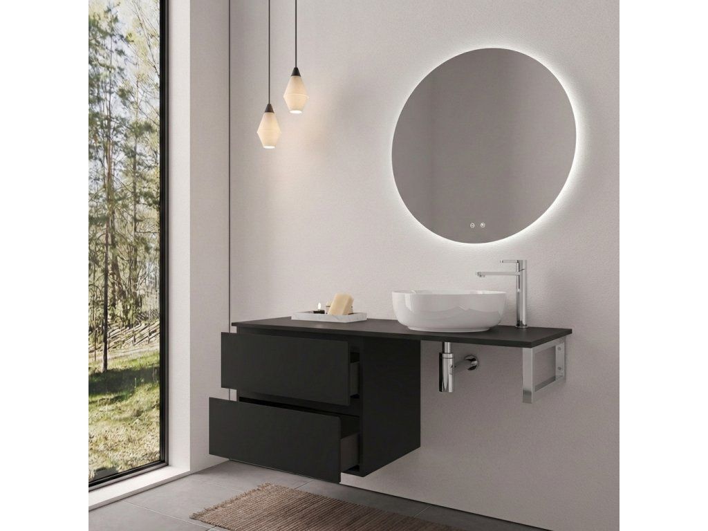 CERANO - Koupelnová skříňka Carole - černá matná + deska pod umyvadlo Navira Slim - 18 mm + konzole chrom - 140x46x54,8 cm