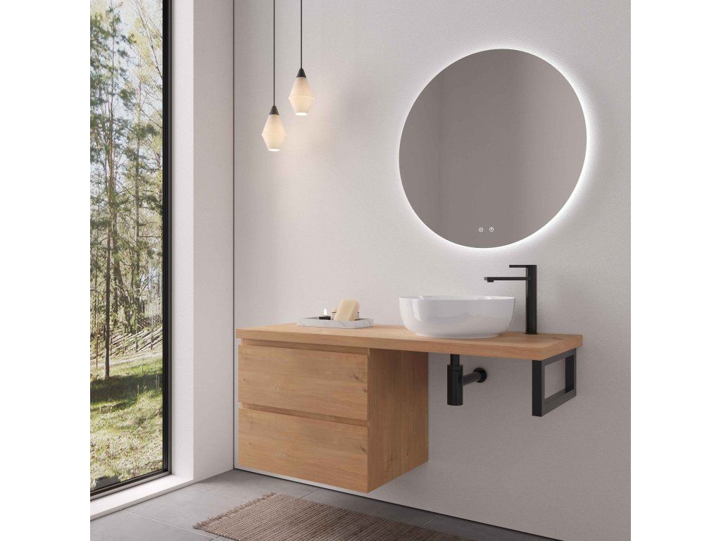 CERANO - Koupelnová skříňka Carole - dub medový + deska pod umyvadlo Navira Pro - 36 mm + konzole černá - 120x46x56,6 cm