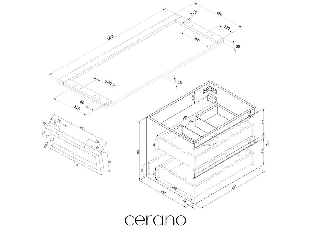 V rámci této série nabízíme širokou škálu rozměrů, abychom uspokojili různé potřeby našich zákazníků. Všechny koupelnové skříňky značky Cerano jsou navrženy tak, aby byly plně kompatibilní s deskami a umyvadly Cerano ve stejných rozměrech, což zajišťuje bezproblémovou instalaci a dokonalé sladění.