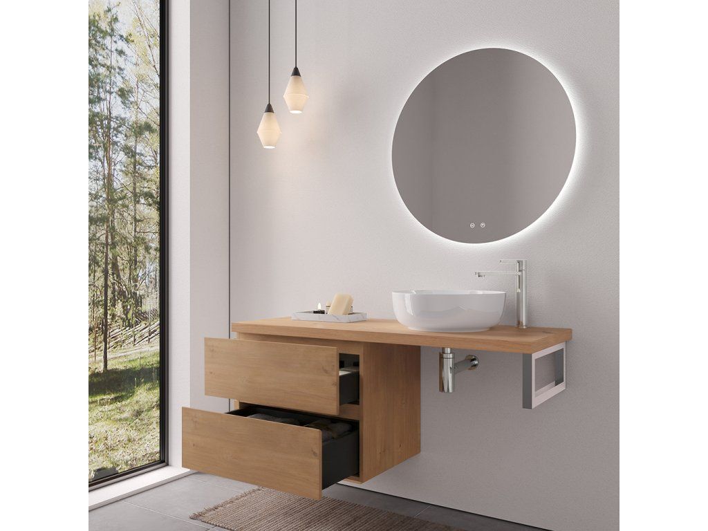 CERANO - Koupelnová skříňka Carole - dub medový + deska pod umyvadlo Navira Pro - 36 mm + konzole chrom - 140x46x56,6 cm
