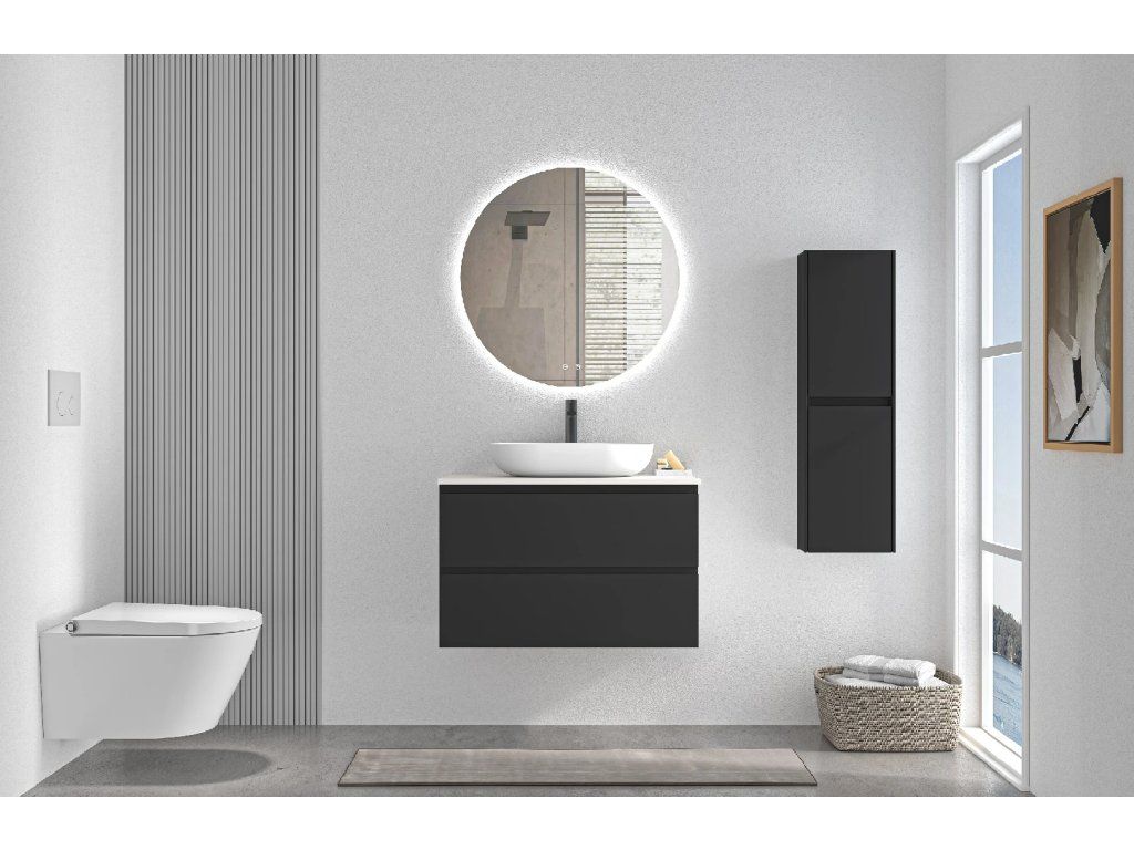 CERANO - Koupelnová skříňka Carole - černá matná + deska pod umyvadlo z lit. mramoru Elanys - 12 mm - bílá matná - 80x49,2x46 cm