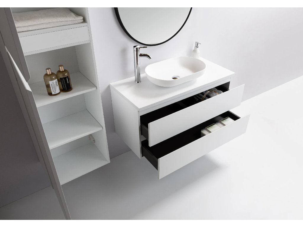 CERANO - Koupelnová skříňka Carole + deska pod umyvadlo Navira Pro - 36 mm - bílá matná - 80x51,6x46 cm