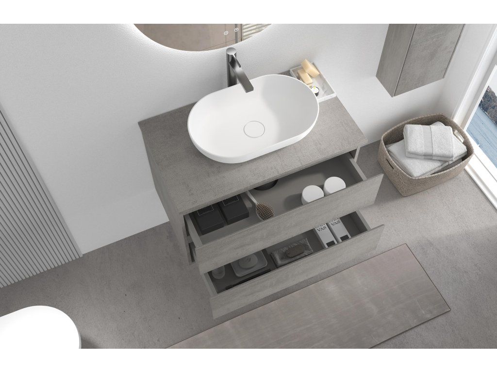 CERANO - Koupelnová skříňka Carole + deska pod umyvadlo Navira Slim - 18 mm - betonově šedá - 80x49,8x46 cm