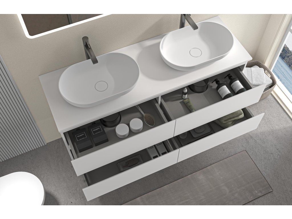 Ke skříňkám vždy nabízíme plně kompatibilní umyvadla nebo desky, u kterých máme jistotu správného usazení a funkčnosti. U umyvadel od jiných dodavatelů je použití možné, ale nemůžeme zaručit plnou kompatibilitu a bezproblémovou montáž.