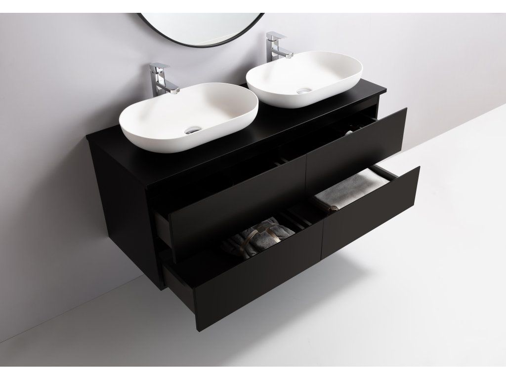 CERANO - Koupelnová skříňka Carole + deska pod umyvadlo Navira Slim - 18 mm - černá matná - 120x49,8x46 cm