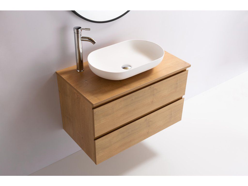 CERANO - Koupelnová skříňka Carole + deska pod umyvadlo Navira Slim - 18 mm - dub medový - 80x49,8x46 cm