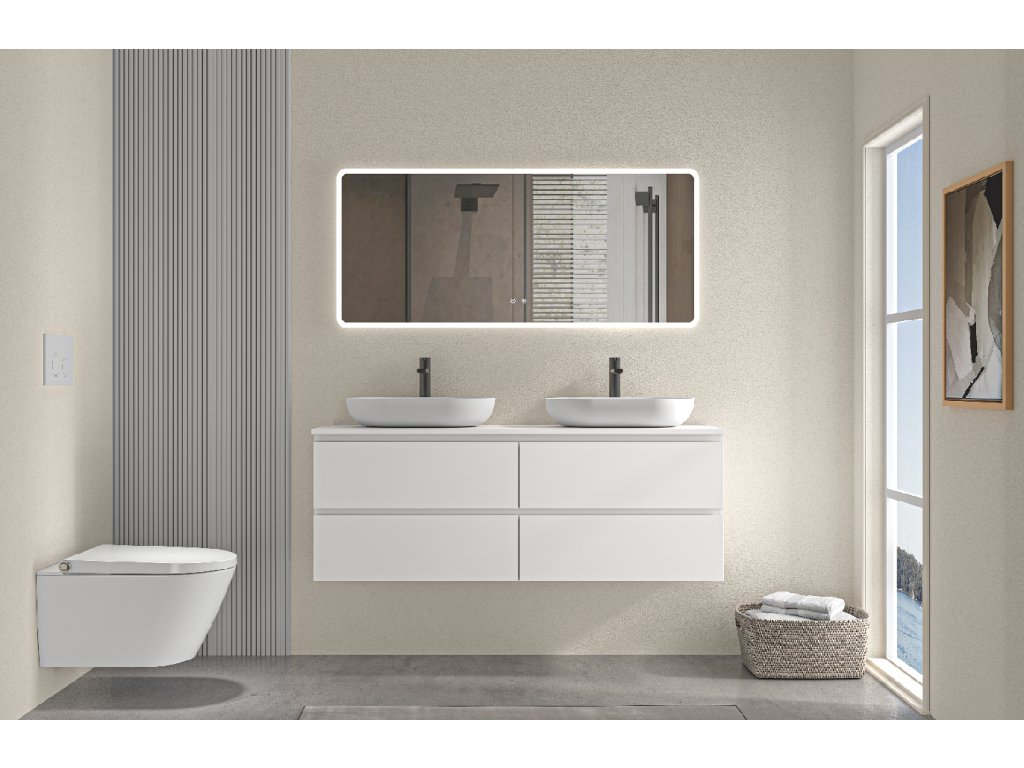 CERANO - Koupelnová skříňka Carole s deskou pod umyvadlo - 18 mm - bílá matná - 161x49,8x46,5 cm
