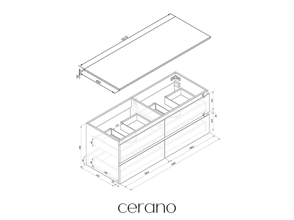 V rámci této série nabízíme širokou škálu rozměrů, abychom uspokojili různé potřeby našich zákazníků. Všechny koupelnové skříňky značky Cerano jsou navrženy tak, aby byly plně kompatibilní s deskami a umyvadly Cerano ve stejných rozměrech, což zajišťuje bezproblémovou instalaci a dokonalé sladění.