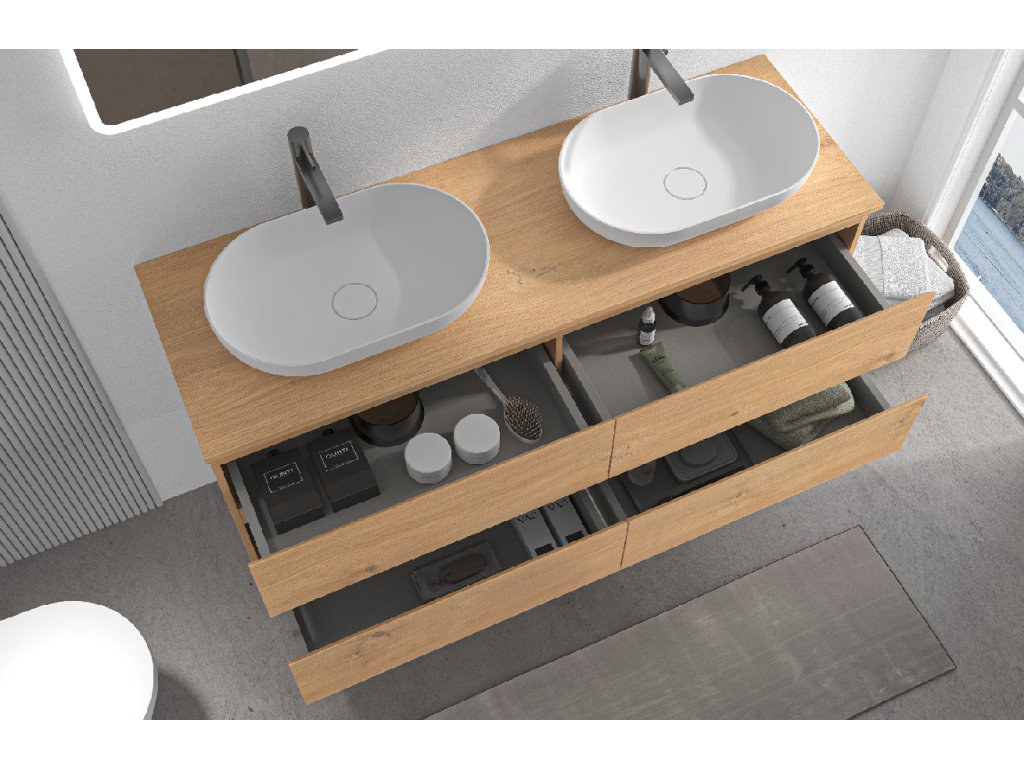 Skříňky lze navíc flexibilně kombinovat – s různými typy umyvadel a deskami pod umyvadlo podle vašich preferencí a možností koupelny. Díky kvalitnímu zpracování a odolným materiálům jsou vhodné pro každodenní používání v koupelnovém prostředí a zajišťují dlouhou životnost i snadnou údržbu.