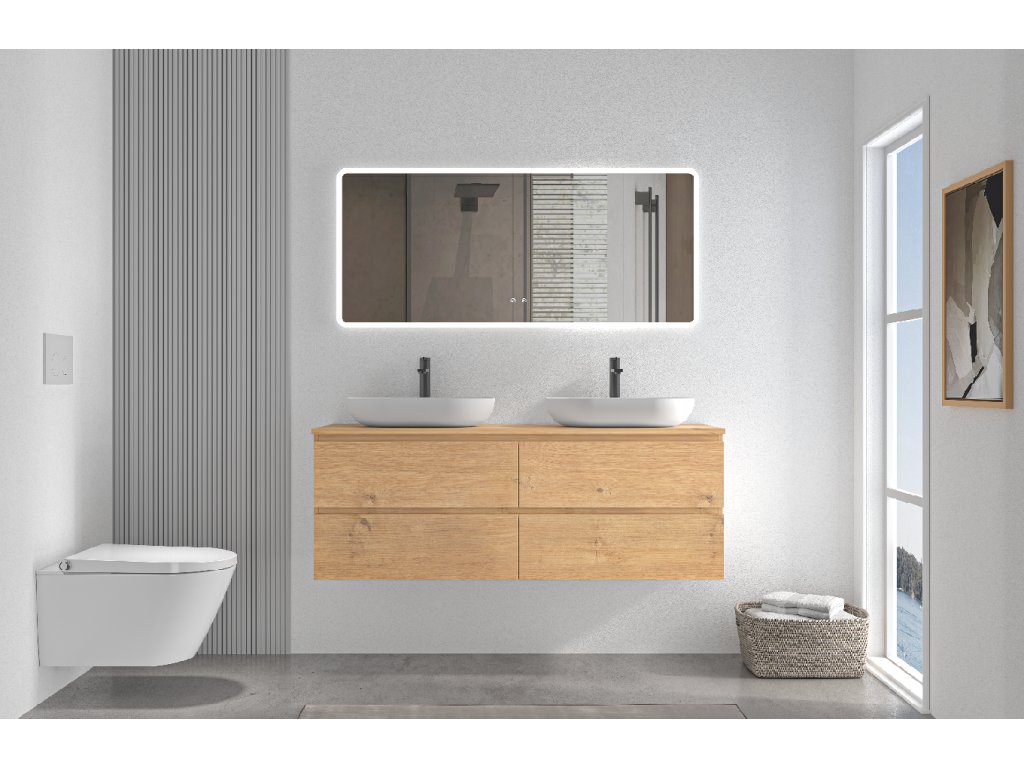 CERANO - Koupelnová skříňka Carole s deskou pod umyvadlo - 18 mm - dub medový - 161x49,8x46,5 cm