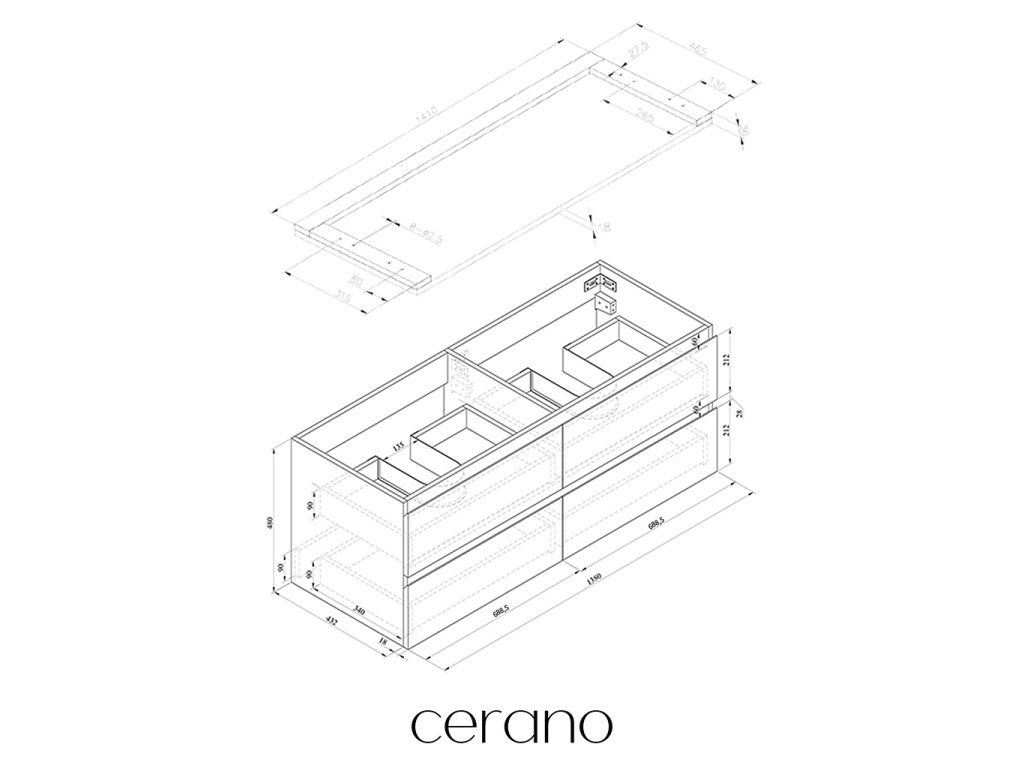 V rámci této série nabízíme širokou škálu rozměrů, abychom uspokojili různé potřeby našich zákazníků. Všechny koupelnové skříňky značky Cerano jsou navrženy tak, aby byly plně kompatibilní s deskami a umyvadly Cerano ve stejných rozměrech, což zajišťuje bezproblémovou instalaci a dokonalé sladění.