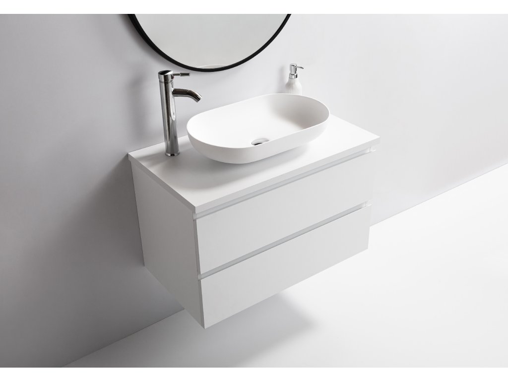 Koupelnové skříňky jsou vyrobeny z MDF lamina (středně hustá dřevovláknitá deska) s nalisovanou melaminovou fólií, která je odolná vůči vlhkosti, poškrábání, UV záření a běžným čisticím prostředkům. Povrch je hladký, tvrdý, homogenní a snadno se čistí. MDF desky se nekroutí jako masivní dřevo. Pokud dojde k mechanickému narušení laminace, samotné MDF jádro může navlhnout.