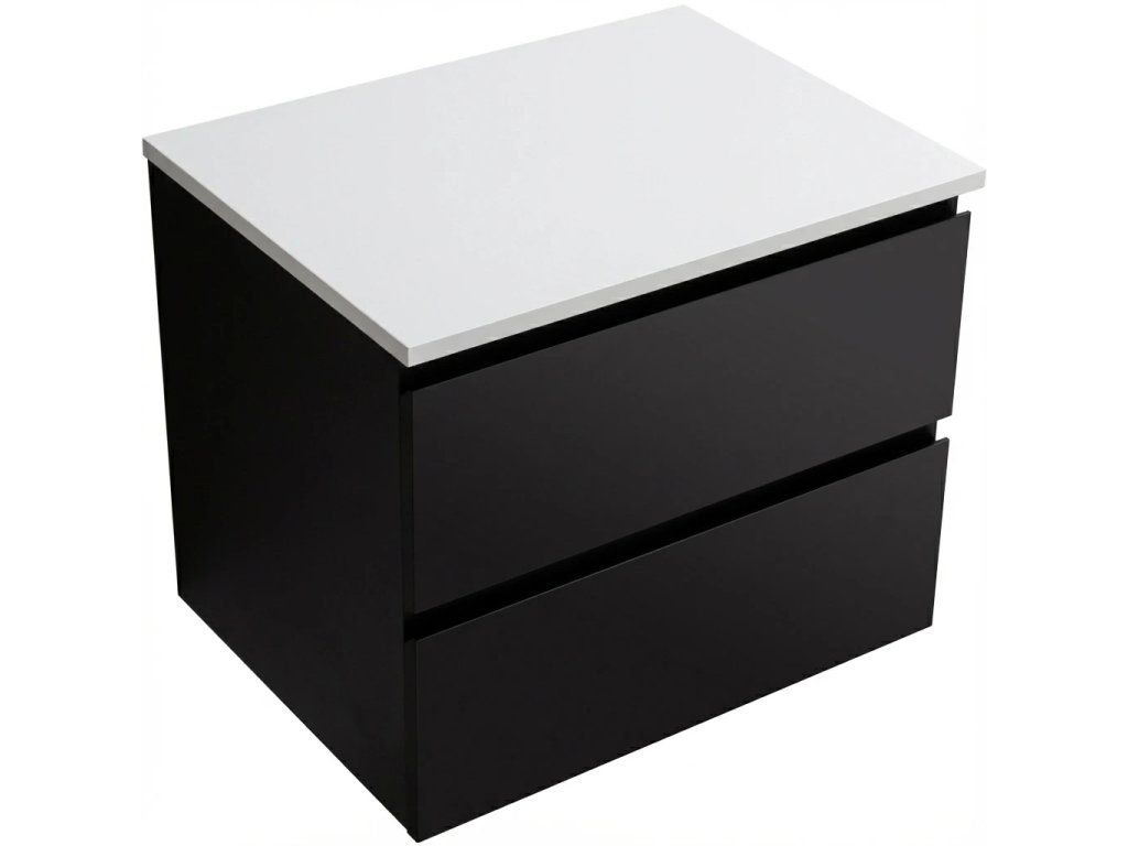 CERANO - Koupelnová skříňka Carole s deskou pod umyvadlo z litého mramoru Elanys - 12 mm - černá matná - 70x49,8x46,5 cm