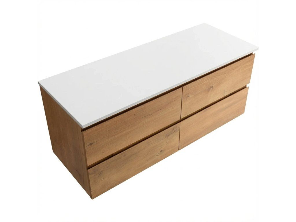 CERANO - Koupelnová skříňka Carole s deskou pod umyvadlo z litého mramoru Elanys - 12 mm - dub medový - 140x49,8x46,5 cm