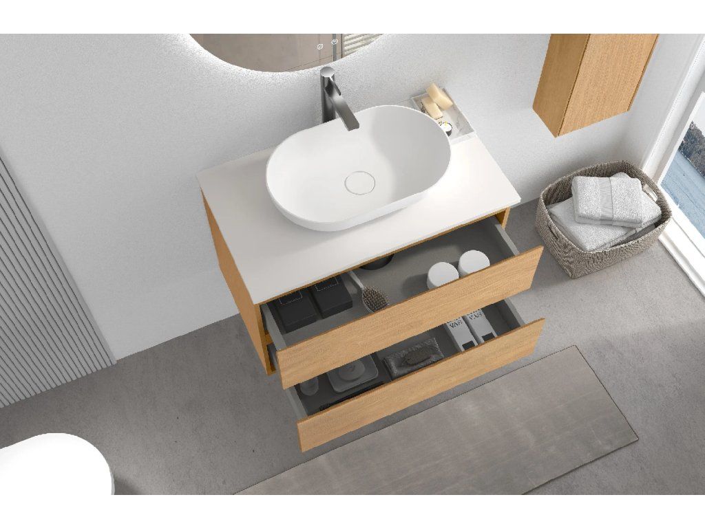 Ke skříňkám vždy nabízíme plně kompatibilní umyvadla nebo desky, u kterých máme jistotu správného usazení a funkčnosti. U umyvadel od jiných dodavatelů je použití možné, ale nemůžeme zaručit plnou kompatibilitu a bezproblémovou montáž.