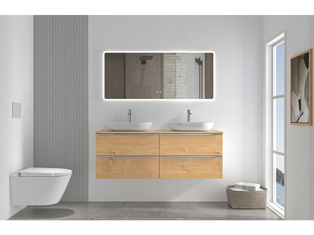 Koupelnové skříňky jsou vyrobeny z MDF lamina (středně hustá dřevovláknitá deska) s nalisovanou melaminovou fólií, která je odolná vůči vlhkosti, poškrábání, UV záření a běžným čisticím prostředkům. Povrch je hladký, tvrdý, homogenní a snadno se čistí. MDF desky se nekroutí jako masivní dřevo. Pokud dojde k mechanickému narušení laminace, samotné MDF jádro může navlhnout.