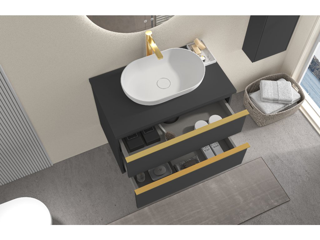 CERANO - Koupelnová skříňka pod umyvadlo s úchytkou/deskou pod umyvadlo Velora - 36 mm - černá matná, zlatá úchytka - 59x53x46 cm