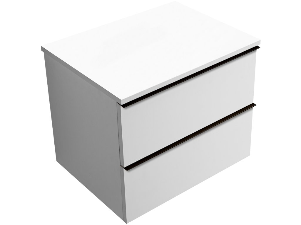 CERANO - Koupelnová skříňka pod umyvadlo Velora s úchytkou/deskou z litého mramoru Elanys - 12 mm - bílá matná, černá úchytka - 59x53x46 cm