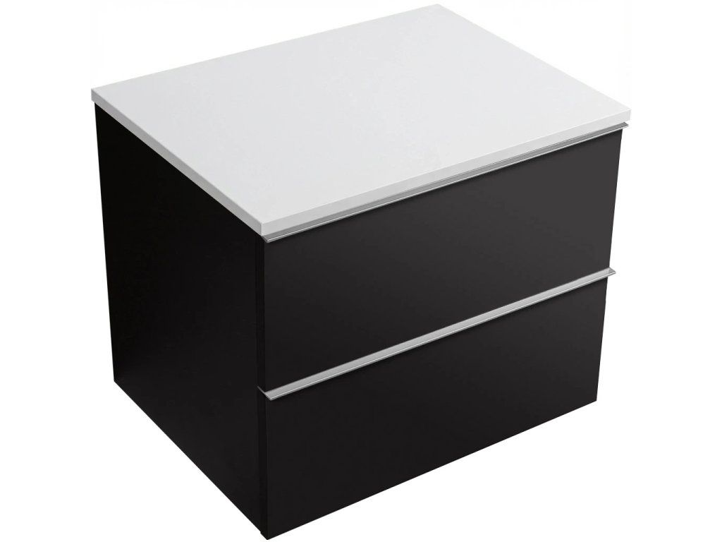 CERANO - Koupelnová skříňka pod umyvadlo Velora s úchytkou/deskou z litého mramoru Elanys - 12 mm - černá matná, chromová úchytka - 59x53x46 cm
