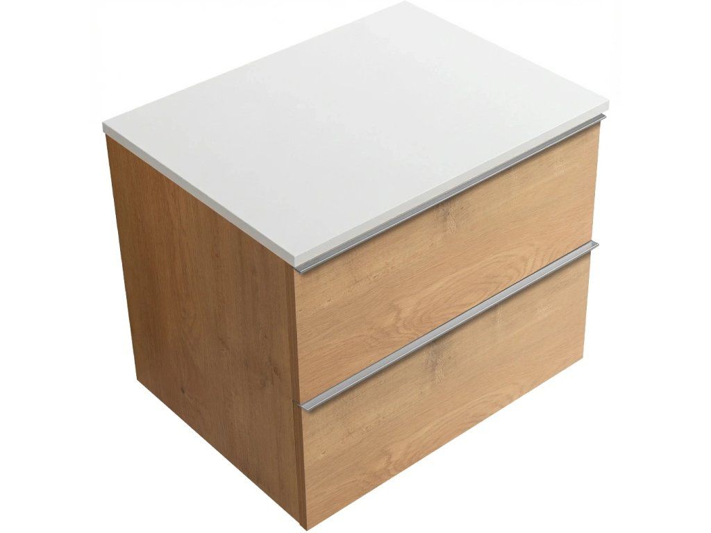 CERANO - Koupelnová skříňka pod umyvadlo Velora s úchytkou/deskou z litého mramoru Elanys - 12 mm - dub medový, chromová úchytka - 59x53x46 cm