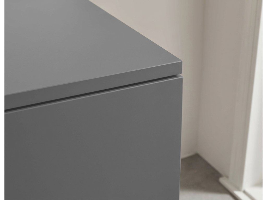 Díky integrovanému soft-close mechanismu se dvířka a zásuvky zavírají plynule a tiše – hydraulický doraz tlumí náraz, zabraňuje bouchání a snižuje opotřebení, takže nábytek vydrží déle a používání je pohodlné.