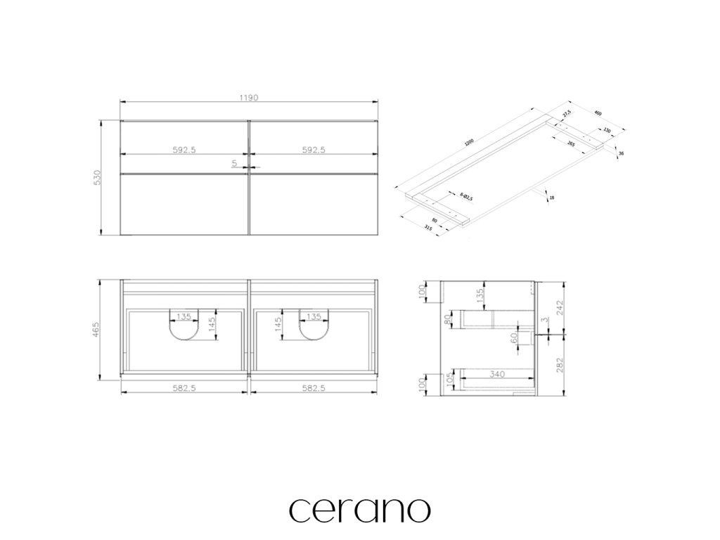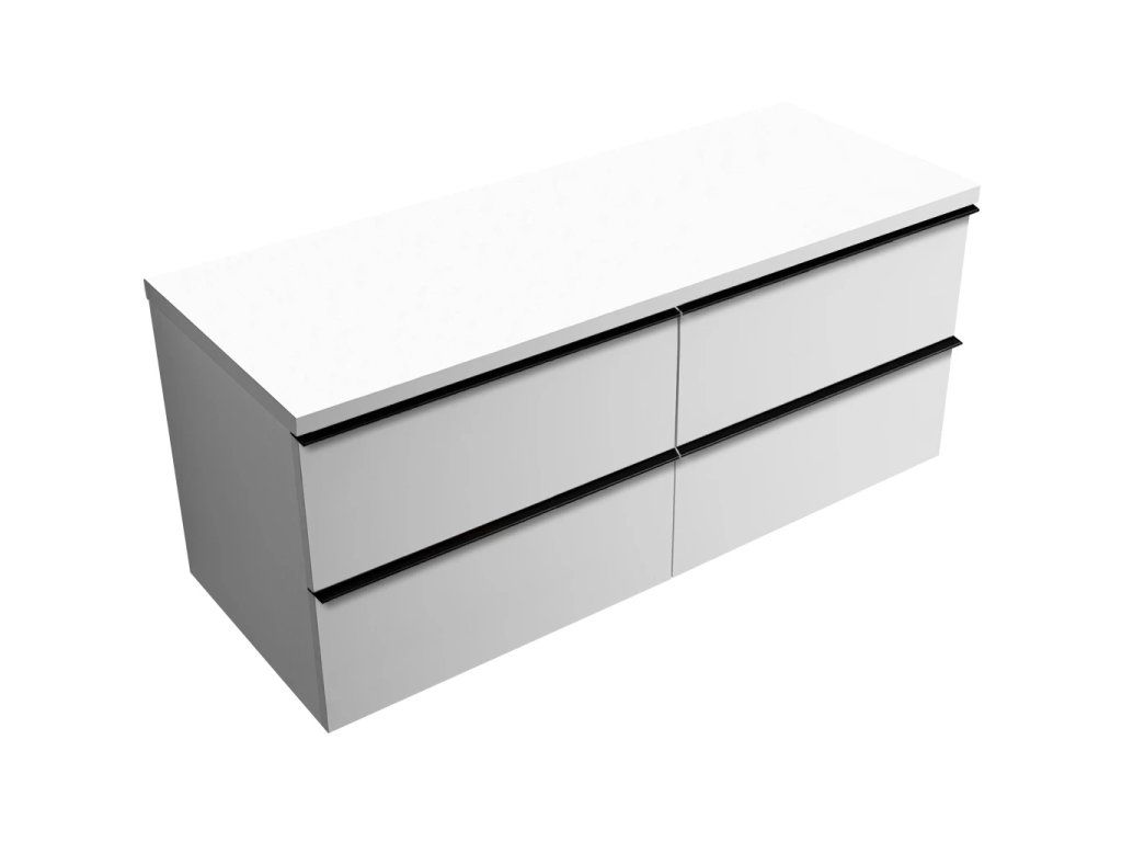 CERANO - Koupelnová skříňka Velora - bílá matná, úchytka černá + deska pod umyvadlo Navira Pro - 36 mm - 120x56,6x46,5 cm