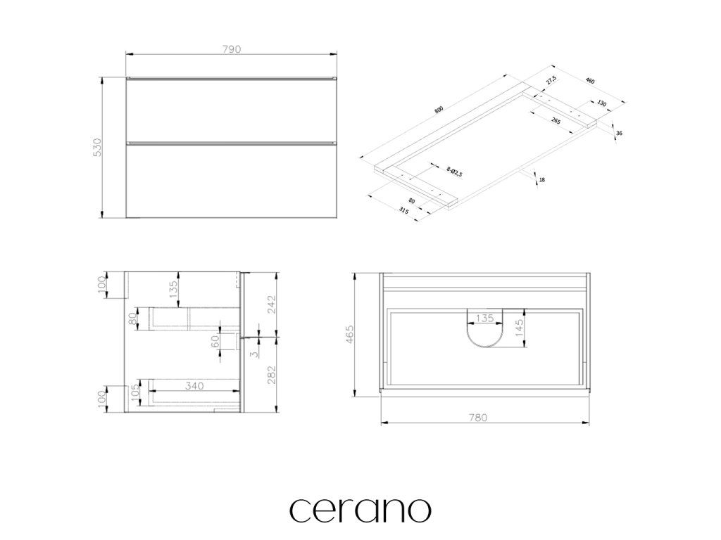 CERANO - Koupelnová skříňka Velora - bílá matná, úchytka černá + deska pod umyvadlo Navira Pro - 36 mm - 80x56,6x46,5 cm