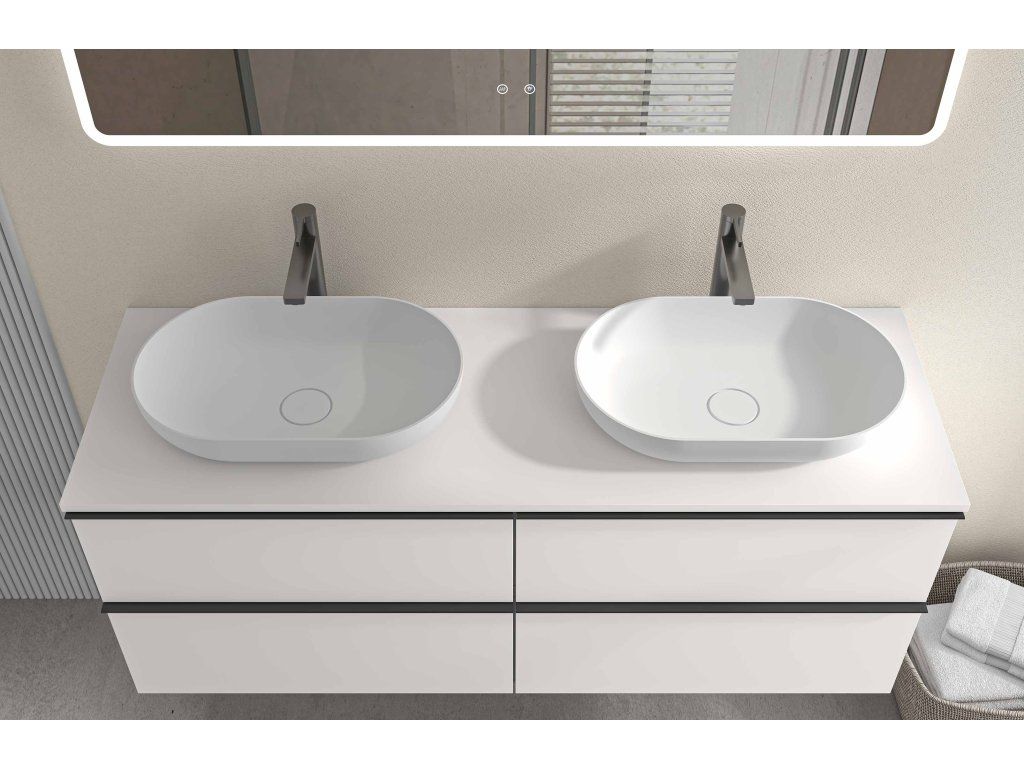 CERANO - Koupelnová skříňka Velora - bílá matná, úchytka černá + deska pod umyvadlo Navira Slim - 18 mm - 160x54,8x46,5 cm