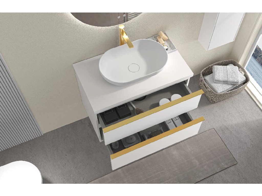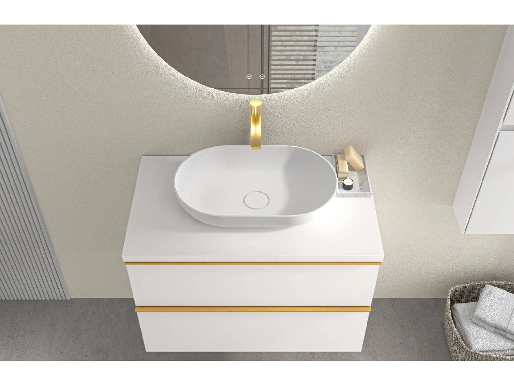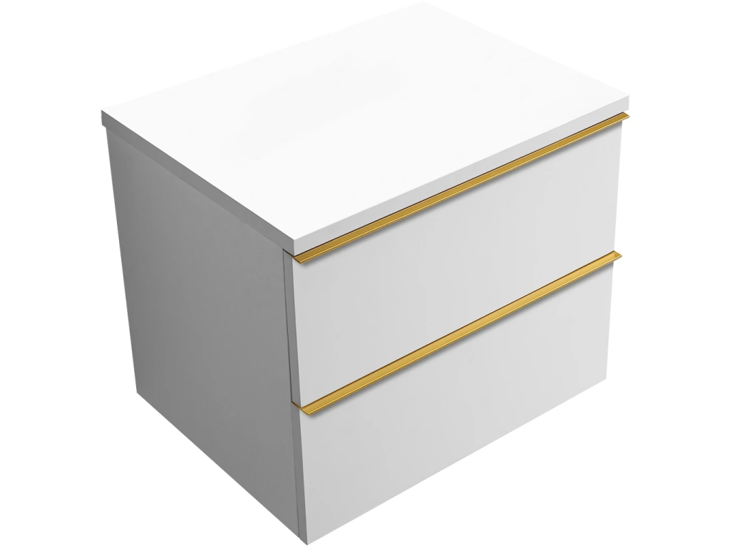 CERANO - Koupelnová skříňka Velora - bílá matná, úchytka zlatá + deska pod umyvadlo Navira Pro - 36 mm - 70x56,6x46,5 cm