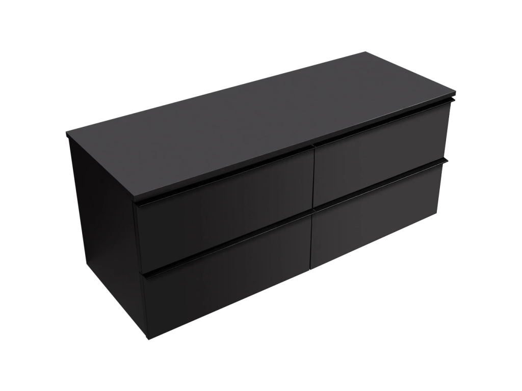 CERANO - Koupelnová skříňka Velora - černá matná, úchytka černá + deska pod umyvadlo Navira Slim - 18 mm - 140x54,8x46,5 cm