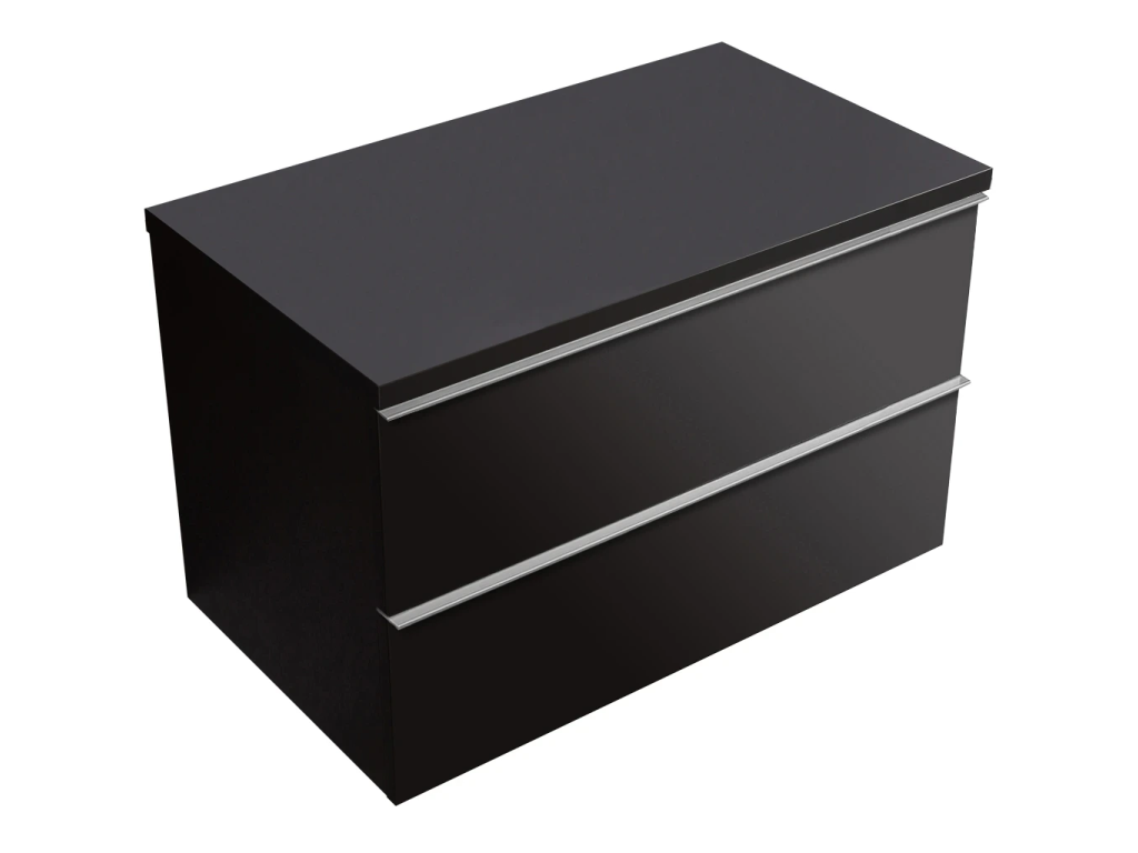 CERANO - Koupelnová skříňka Velora - černá matná, úchytka chromová + deska pod umyvadlo Navira Pro - 36 mm - 80x56,6x46,5 cm