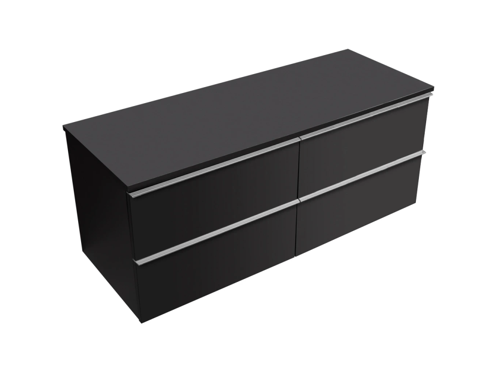 CERANO - Koupelnová skříňka Velora - černá matná, úchytka chromová + deska pod umyvadlo Navira Slim - 18 mm - 140x54,8x46,5 cm