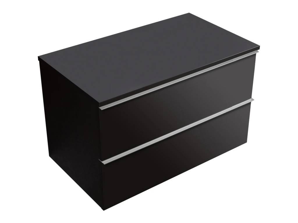 CERANO - Koupelnová skříňka Velora - černá matná, úchytka chromová + deska pod umyvadlo Navira Slim - 18 mm - 80x54,8x46,5 cm