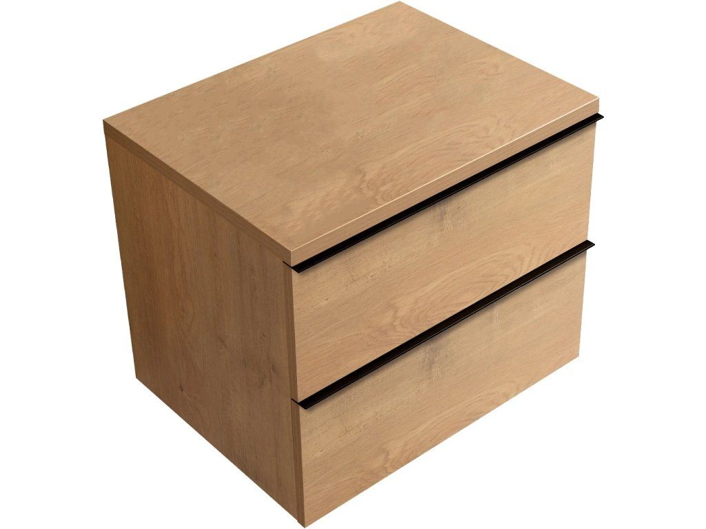 CERANO - Koupelnová skříňka Velora - dub medový, úchytka černá + deska pod umyvadlo Navira Pro - 36 mm - 60x56,6x46,5 cm