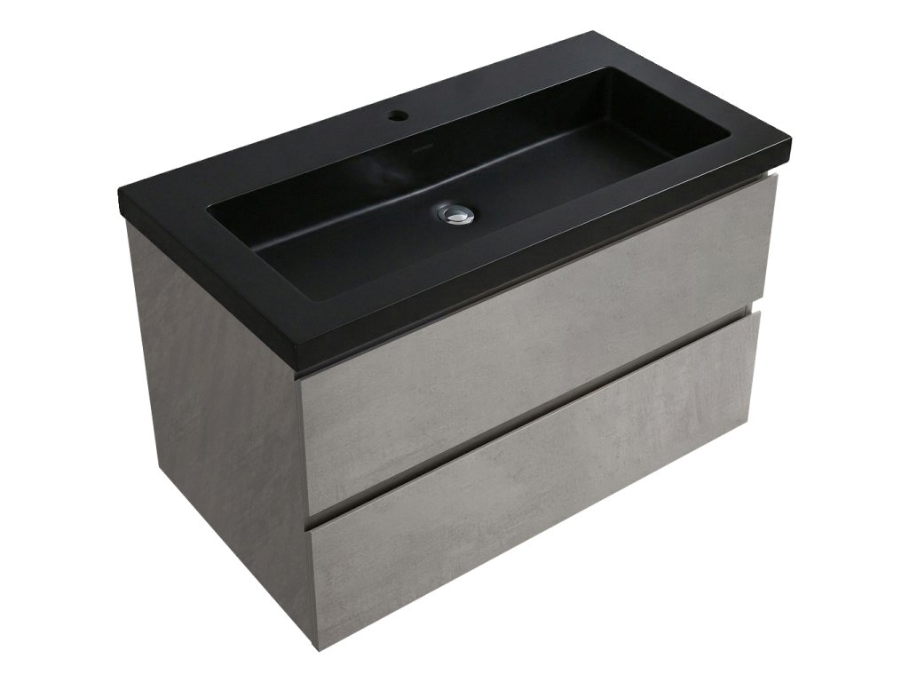 CERANO - Koupelnová skříňka Carole - betonově šedá + umyvadlo z lit. Mramoru Ovo - černá matná - 101x49,5x46,5 cm